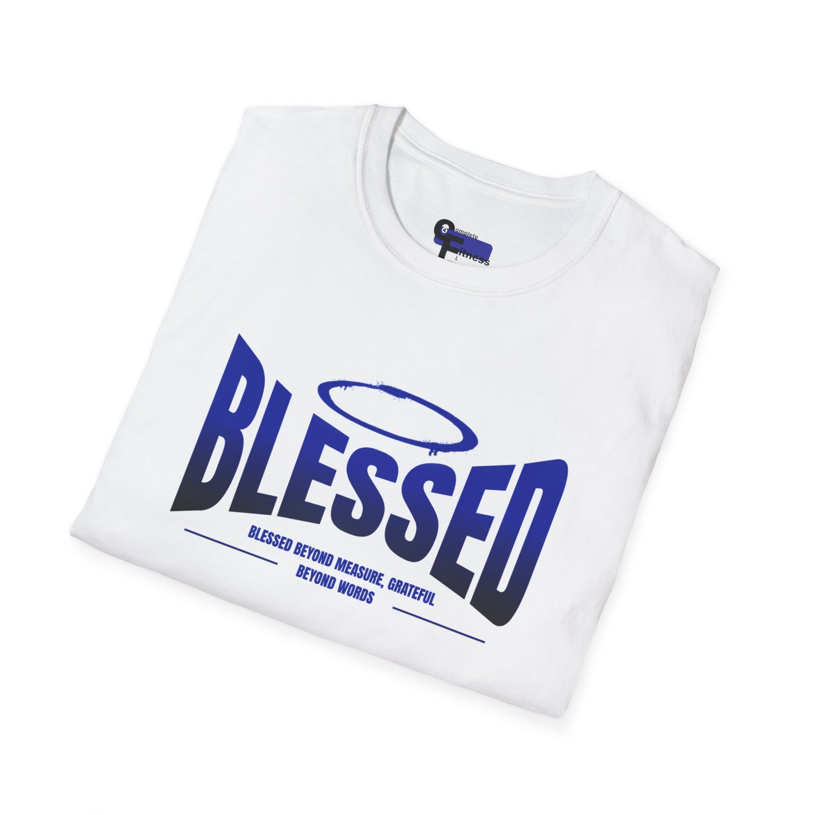 A lightweight, everyday tee that quietly shares a grateful heartbeat. Soft ring-spun cotton drapes easily over shoulders and keeps its shape thanks to ribbed neck and shoulder tape. The bold, halo-accented “BLESSED” graphic sits across the chest in deep blue, a simple statement that reads like a lived-in faith or a personal reminder. Wear it…